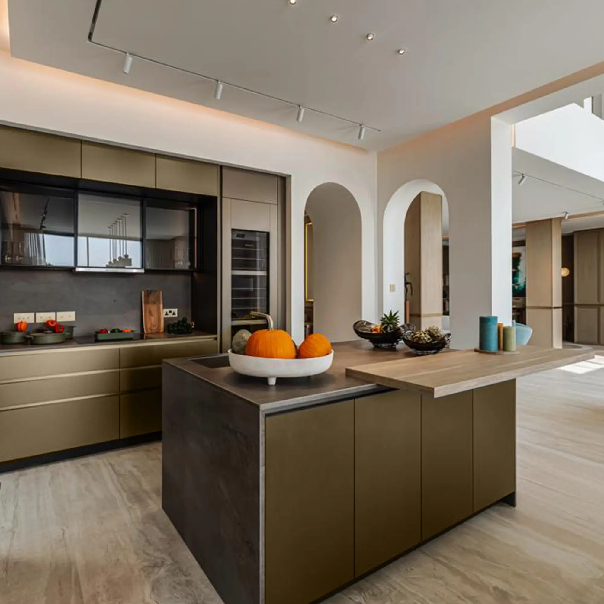 Its exterior is defined by bold geometric shapes and elegant arched forms that catch the light throughout the day, giving the villa a sense of movement and depth. A contemporary architectural landmark within Jumeirah Golf Estates, it balances artistry with structure in perfect harmony. Inside, a private spa, gym, indoor pool and cinema form the wellness level below. The villa includes a show kitchen and a separate service kitchen, fully furnished with bespoke Italian pieces and equipped with an advanced smart home system. Every space reflects craftsmanship, comfort and sophistication.